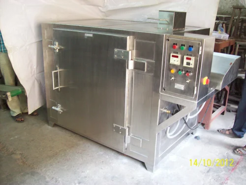 Drying in a tray dryer machine involves loading trays with the material to be dried circulating hot air through them. The air is heated by electric heating elements or a gas burner and forced through the material to evaporate the moisture. The temperature and airflow are adjustable to enable the drying process. The drying time varies. It depends on the type and quantity of material to be dried.